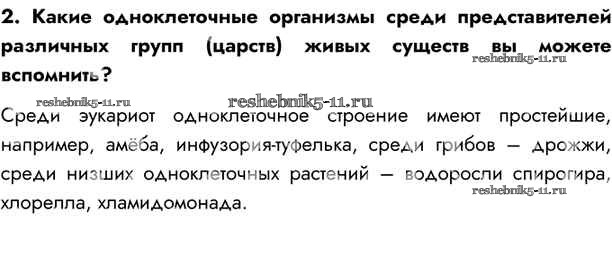 Готовая домашняя работа с ответами по Биологии за 10 класс Пасечник, Каменский, Рубцов Учебник Линия жизни Просвещение 2018 ФГОС - Вспомните 2