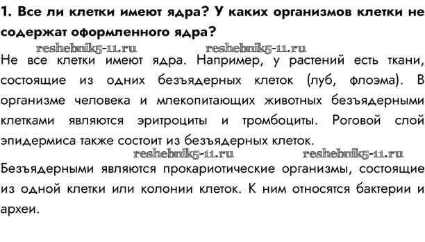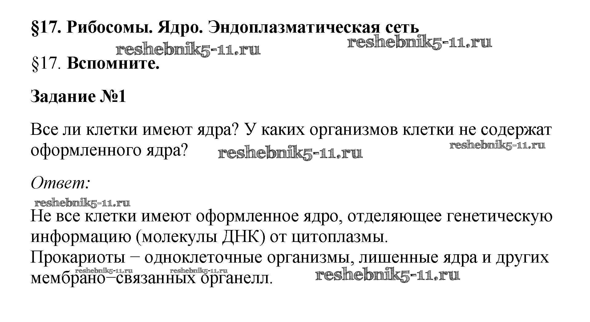 Готовая домашняя работа с ответами по Биологии за 10 класс Пасечник, Каменский, Рубцов Учебник Линия жизни Просвещение 2018 ФГОС - Вспомните 1