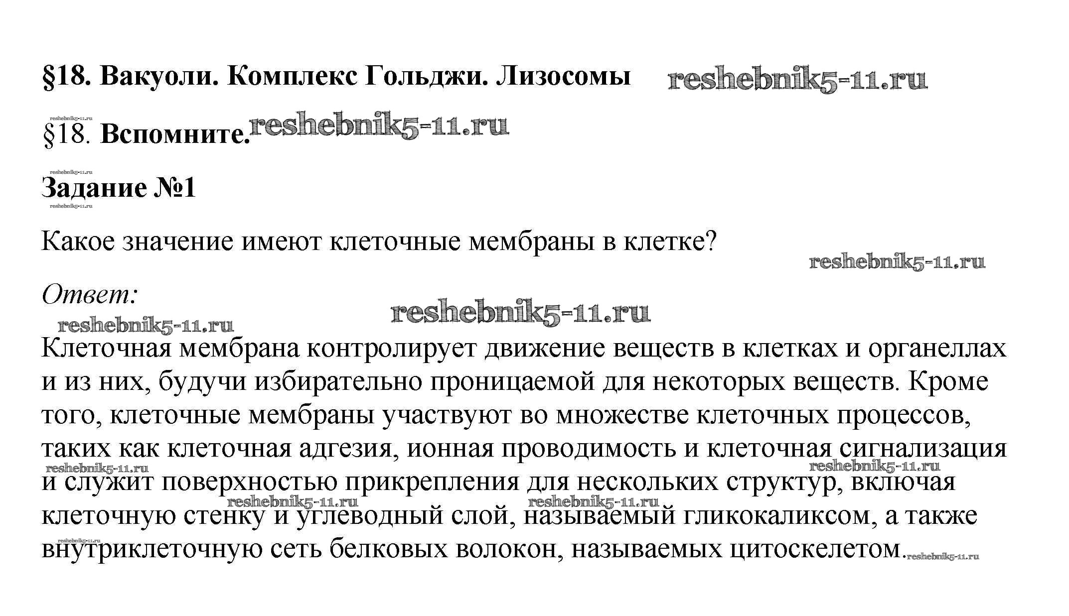 Готовая домашняя работа с ответами по Биологии за 10 класс Пасечник, Каменский, Рубцов Учебник Линия жизни Просвещение 2018 ФГОС - Вспомните 1