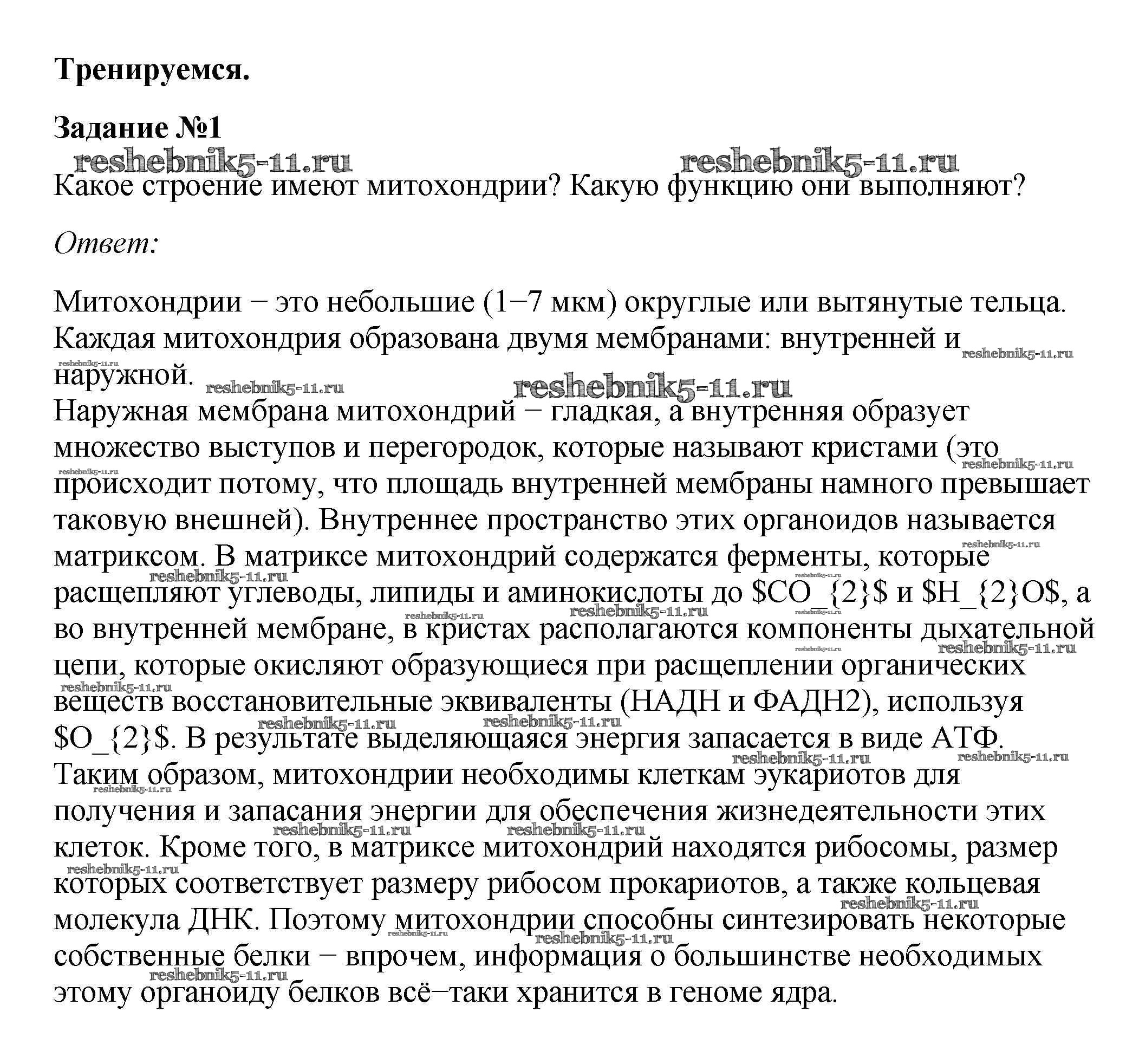 Готовая домашняя работа с ответами по Биологии за 10 класс Пасечник, Каменский, Рубцов Учебник Линия жизни Просвещение 2018 ФГОС - Тренируемся 1