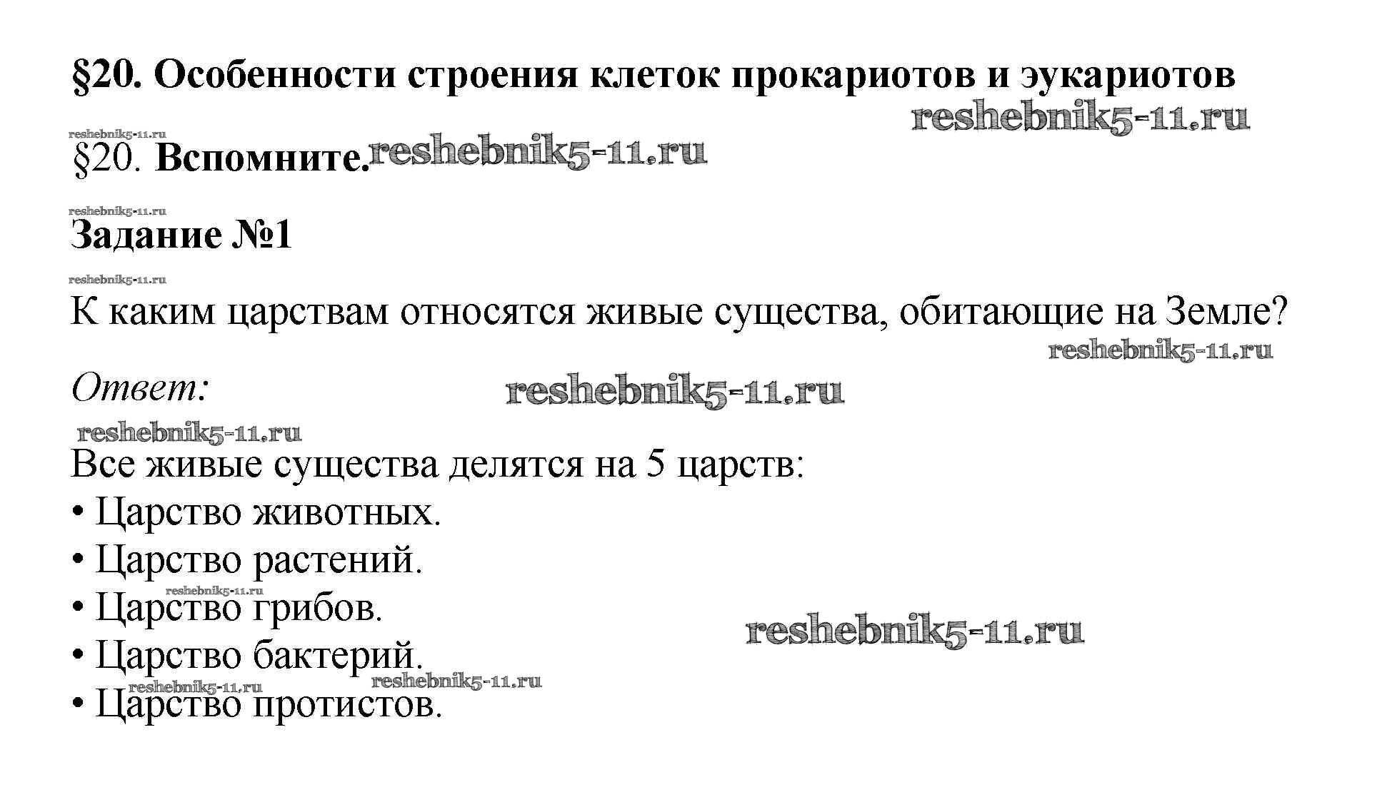 Готовая домашняя работа с ответами по Биологии за 10 класс Пасечник, Каменский, Рубцов Учебник Линия жизни Просвещение 2018 ФГОС - Вспомните 1