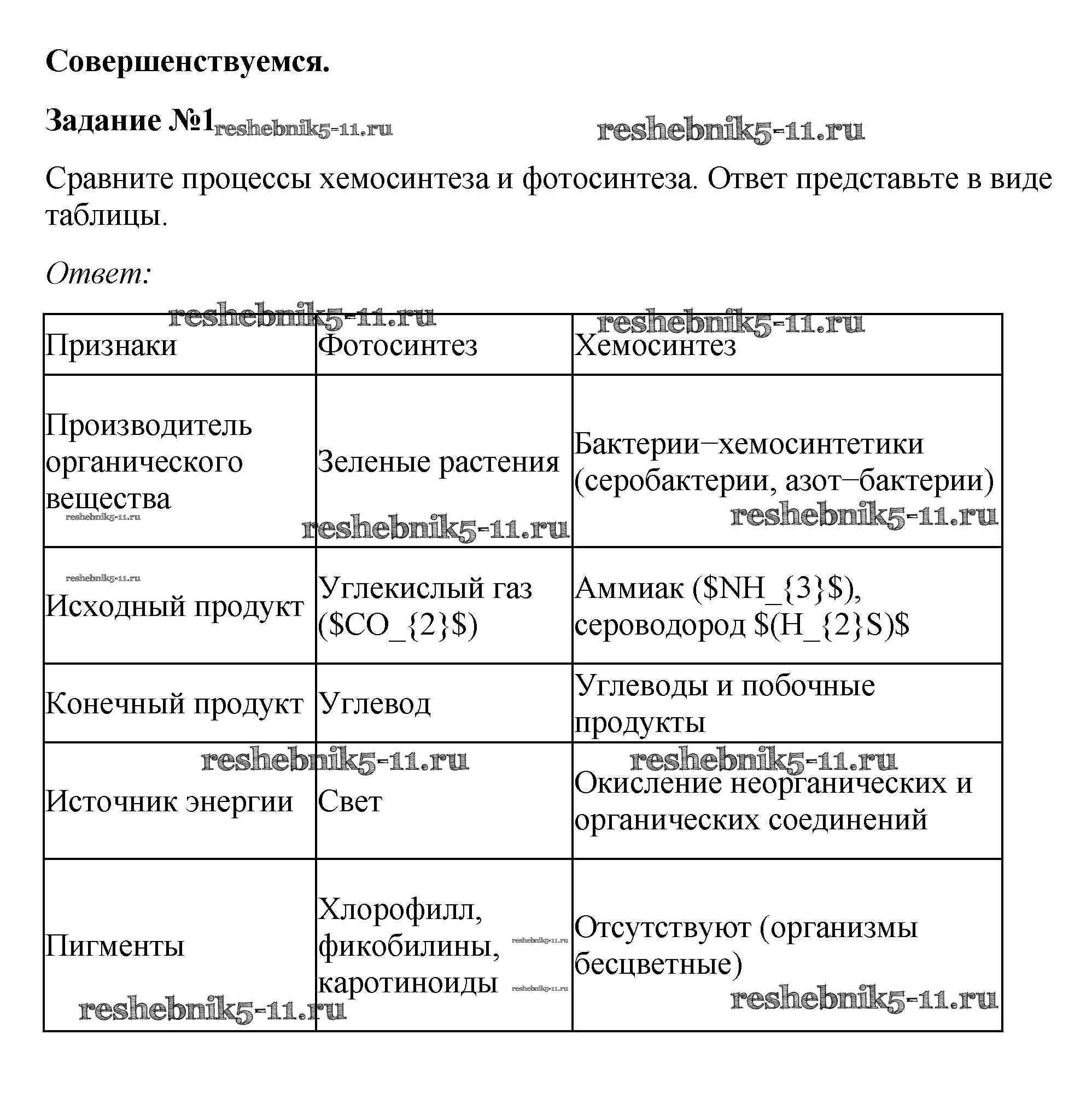 Готовая домашняя работа с ответами по Биологии за 10 класс Пасечник, Каменский, Рубцов Учебник Линия жизни Просвещение 2018 ФГОС - Совершенствуемся 1