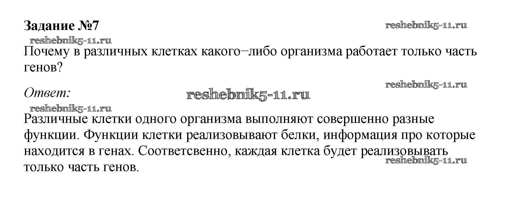 Готовая домашняя работа с ответами по Биологии за 10 класс Пасечник, Каменский, Рубцов Учебник Линия жизни Просвещение 2018 ФГОС - Тренируемся 7
