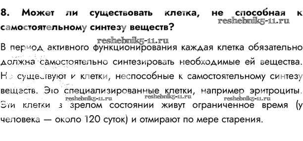 Готовая домашняя работа с ответами по Биологии за 10 класс Пасечник, Каменский, Рубцов Учебник Линия жизни Просвещение 2018 ФГОС - Тренируемся 8