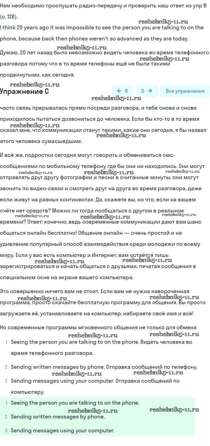 Готовая домашняя работа с ответами по Английскому языку за 10 класс Комарова, Ларионова, Араванис, Вассилакис Учебник Инновационная школа Базовый уровень Русское слово 2018 ФГОС - Страницы 126