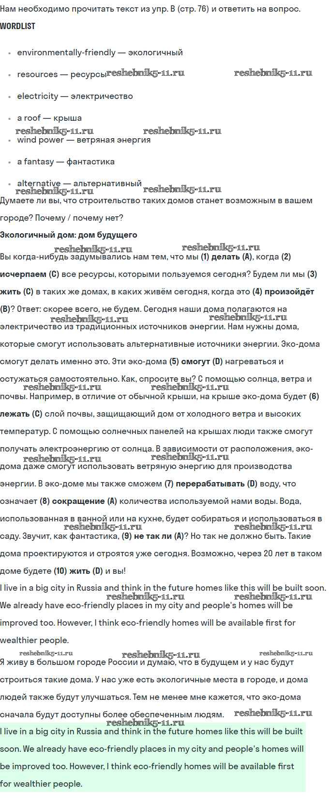 Готовая домашняя работа с ответами по Английскому языку за 10 класс Комарова, Ларионова, Араванис, Вассилакис Учебник Инновационная школа Базовый уровень Русское слово 2018 ФГОС - Страницы 76