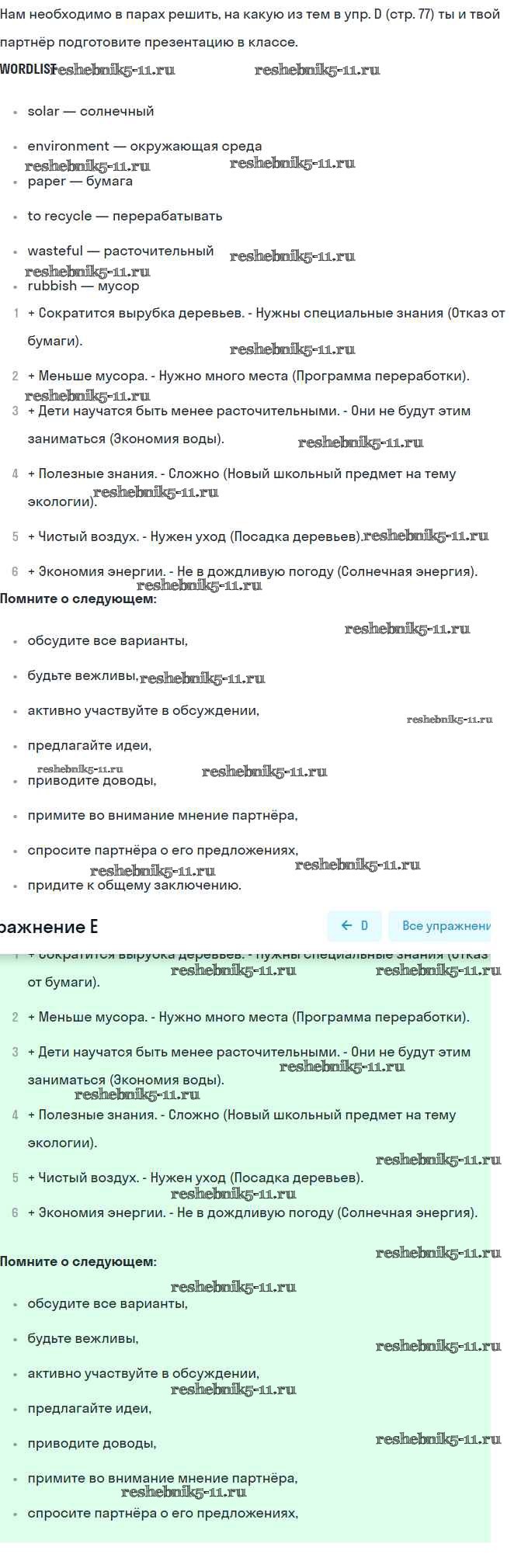Готовая домашняя работа с ответами по Английскому языку за 10 класс Комарова, Ларионова, Араванис, Вассилакис Учебник Инновационная школа Базовый уровень Русское слово 2018 ФГОС - Страницы 77