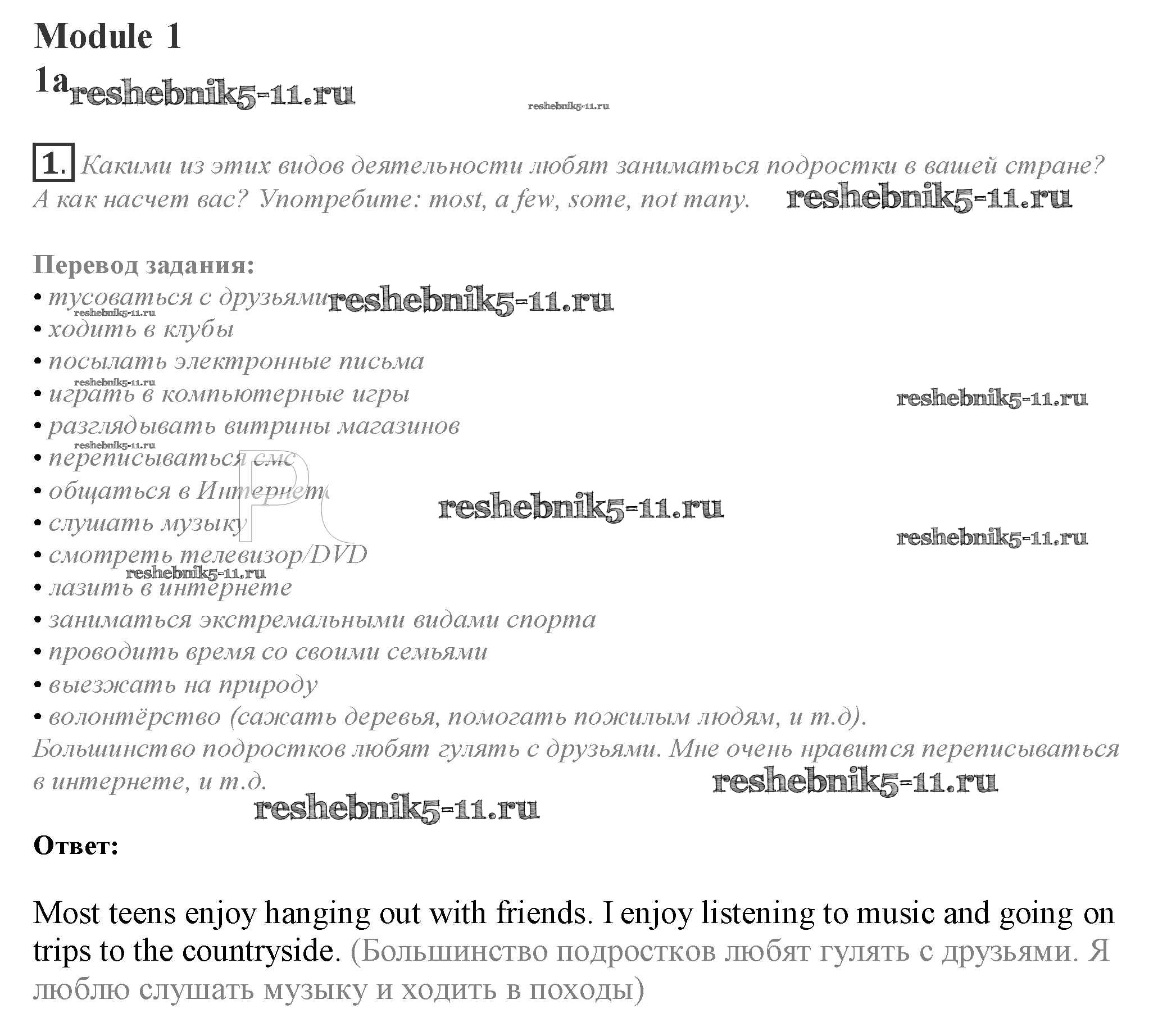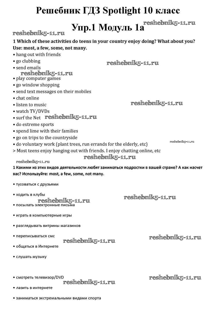 Готовая домашняя работа с ответами по Английскому языку за 10 класс Афанасьева, Дули, Михеева, Оби, Эванс Учебник Spotlight Просвещение 2015 ФГОС - Часть 1a 1