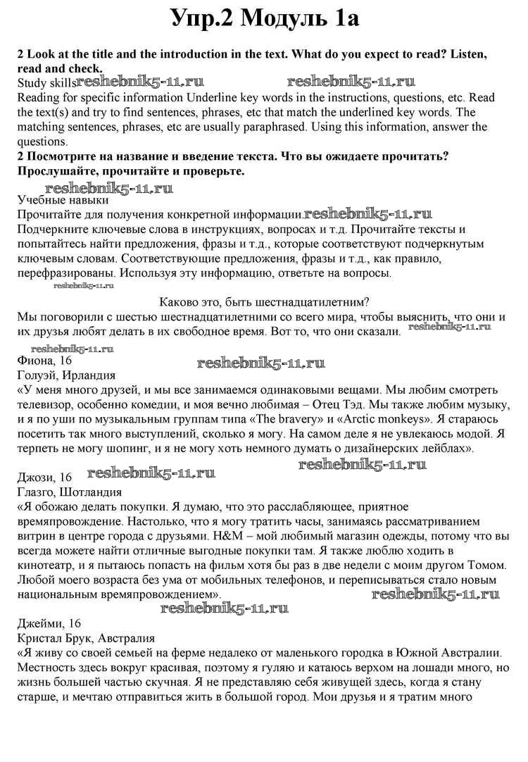 Готовая домашняя работа с ответами по Английскому языку за 10 класс Афанасьева, Дули, Михеева, Оби, Эванс Учебник Spotlight Просвещение 2015 ФГОС - Часть 1a 2