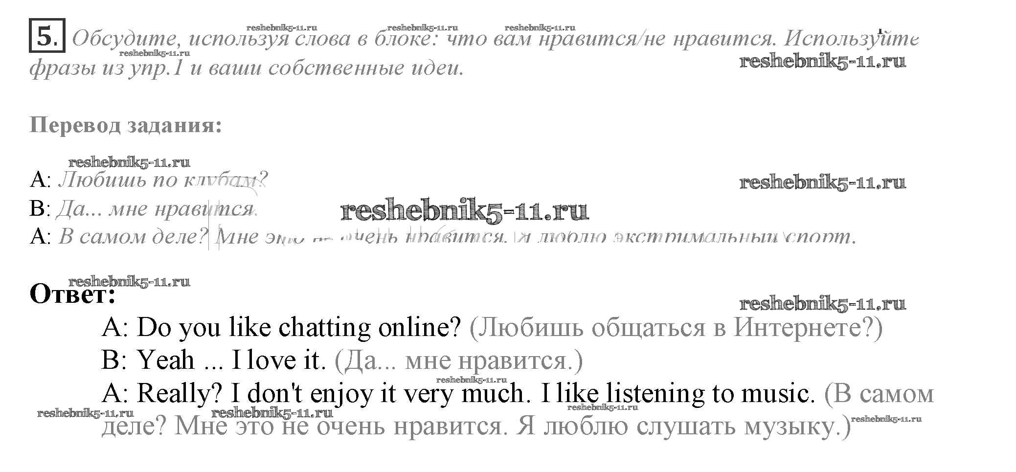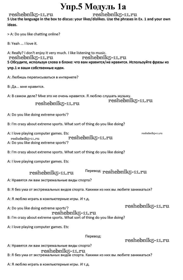 Готовая домашняя работа с ответами по Английскому языку за 10 класс Афанасьева, Дули, Михеева, Оби, Эванс Учебник Spotlight Просвещение 2015 ФГОС - Часть 1a 5