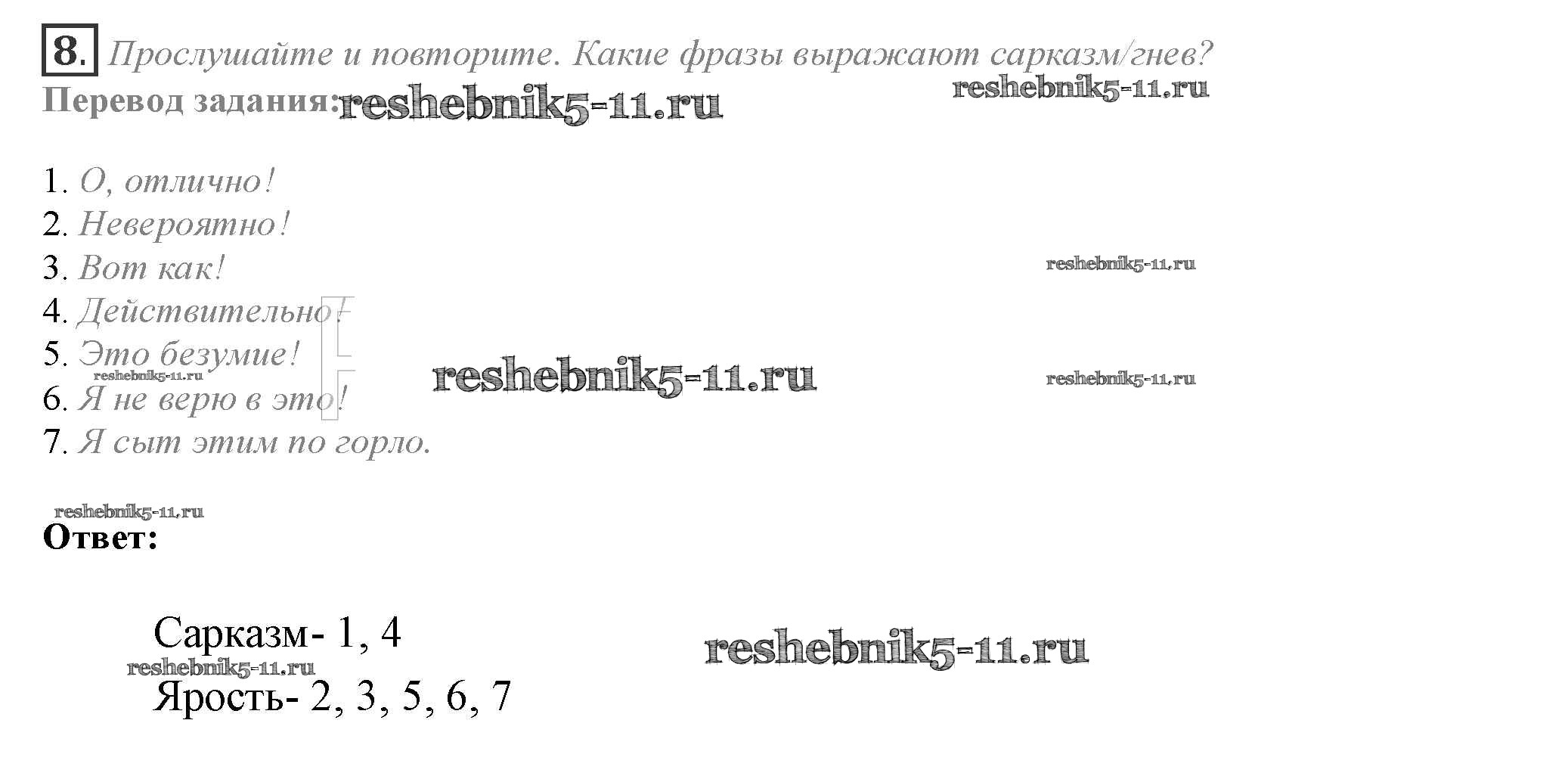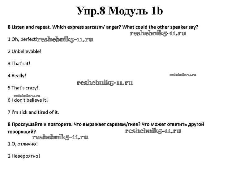 Готовая домашняя работа с ответами по Английскому языку за 10 класс Афанасьева, Дули, Михеева, Оби, Эванс Учебник Spotlight Просвещение 2015 ФГОС - Часть 1b 8