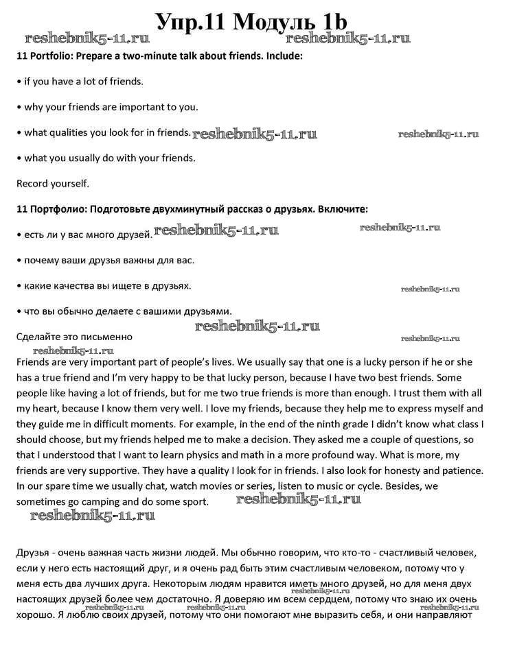 Готовая домашняя работа с ответами по Английскому языку за 10 класс Афанасьева, Дули, Михеева, Оби, Эванс Учебник Spotlight Просвещение 2015 ФГОС - Часть 1b 11