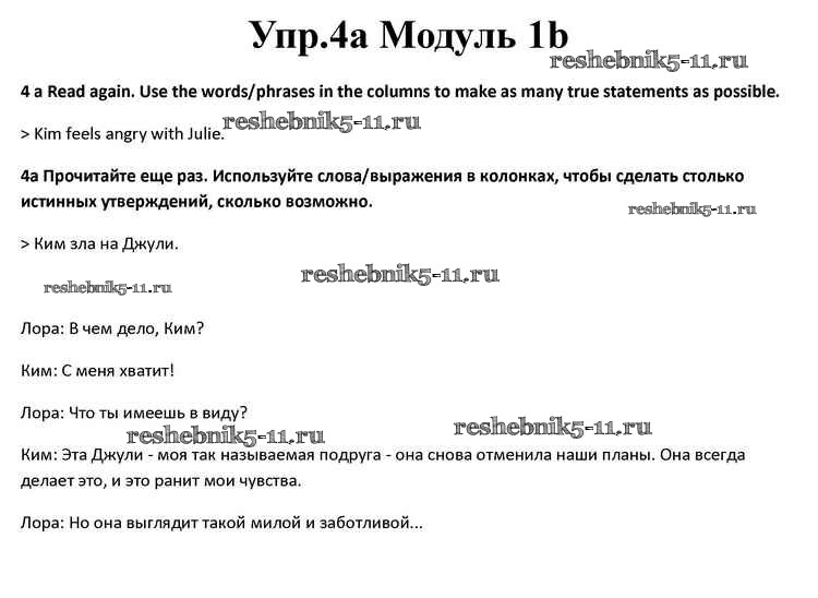 Готовая домашняя работа с ответами по Английскому языку за 10 класс Афанасьева, Дули, Михеева, Оби, Эванс Учебник Spotlight Просвещение 2015 ФГОС - Часть 1b 4a