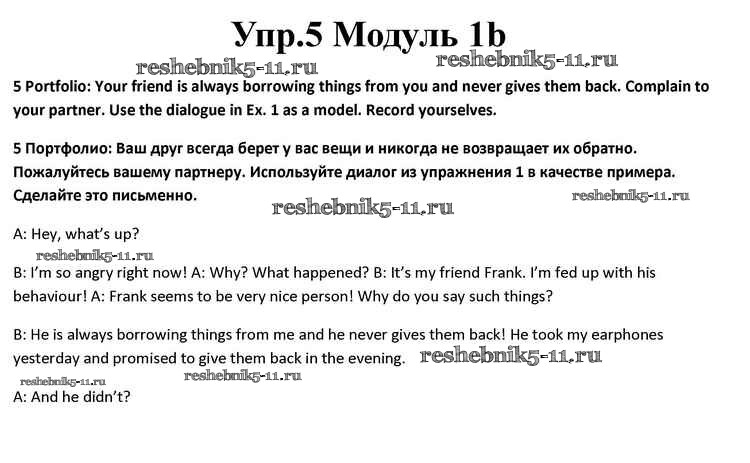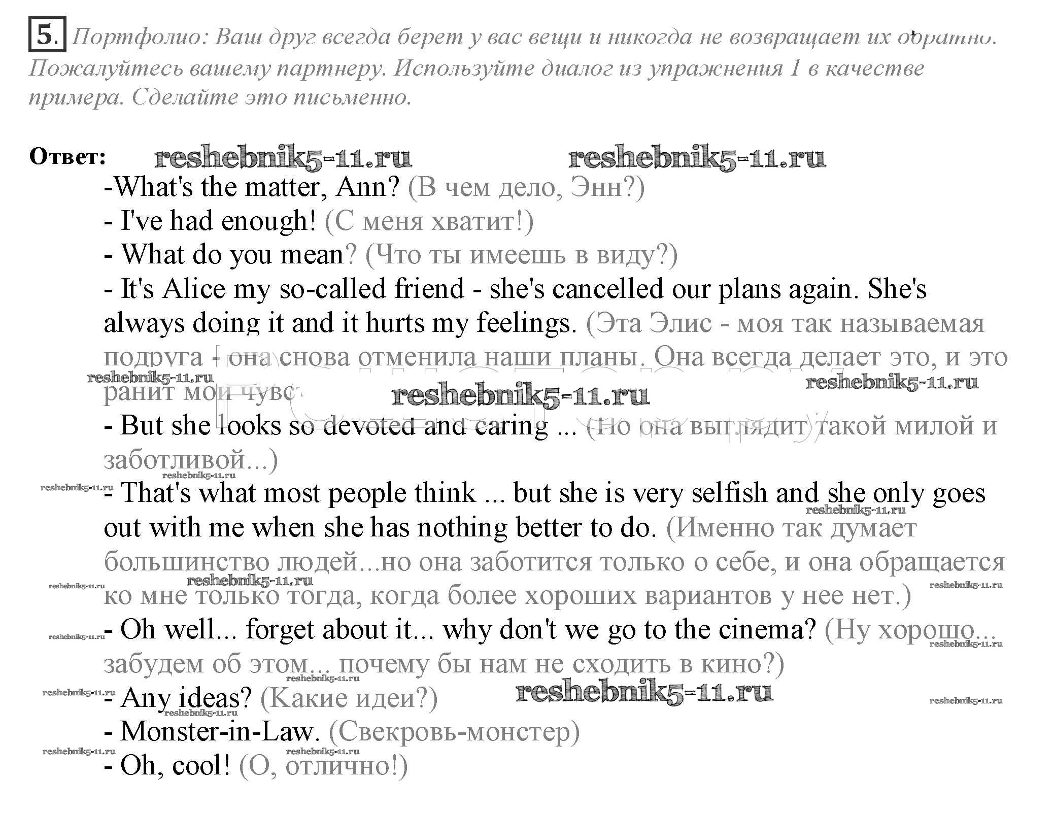 Готовая домашняя работа с ответами по Английскому языку за 10 класс Афанасьева, Дули, Михеева, Оби, Эванс Учебник Spotlight Просвещение 2015 ФГОС - Часть 1b 5