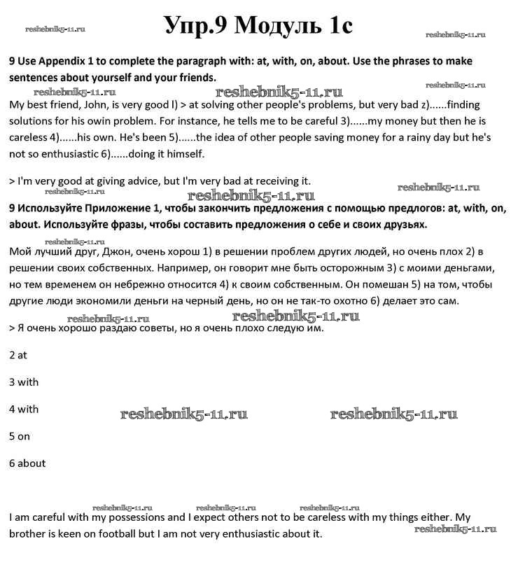 Готовая домашняя работа с ответами по Английскому языку за 10 класс Афанасьева, Дули, Михеева, Оби, Эванс Учебник Spotlight Просвещение 2015 ФГОС - Часть 1c 9