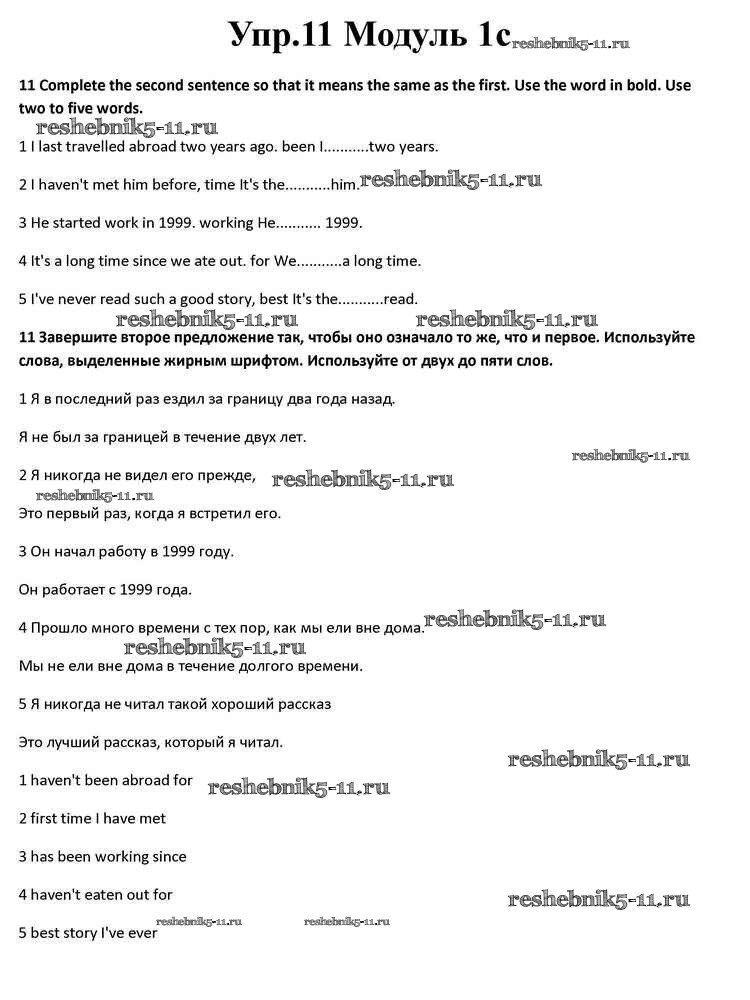 Готовая домашняя работа с ответами по Английскому языку за 10 класс Афанасьева, Дули, Михеева, Оби, Эванс Учебник Spotlight Просвещение 2015 ФГОС - Часть 1c 11