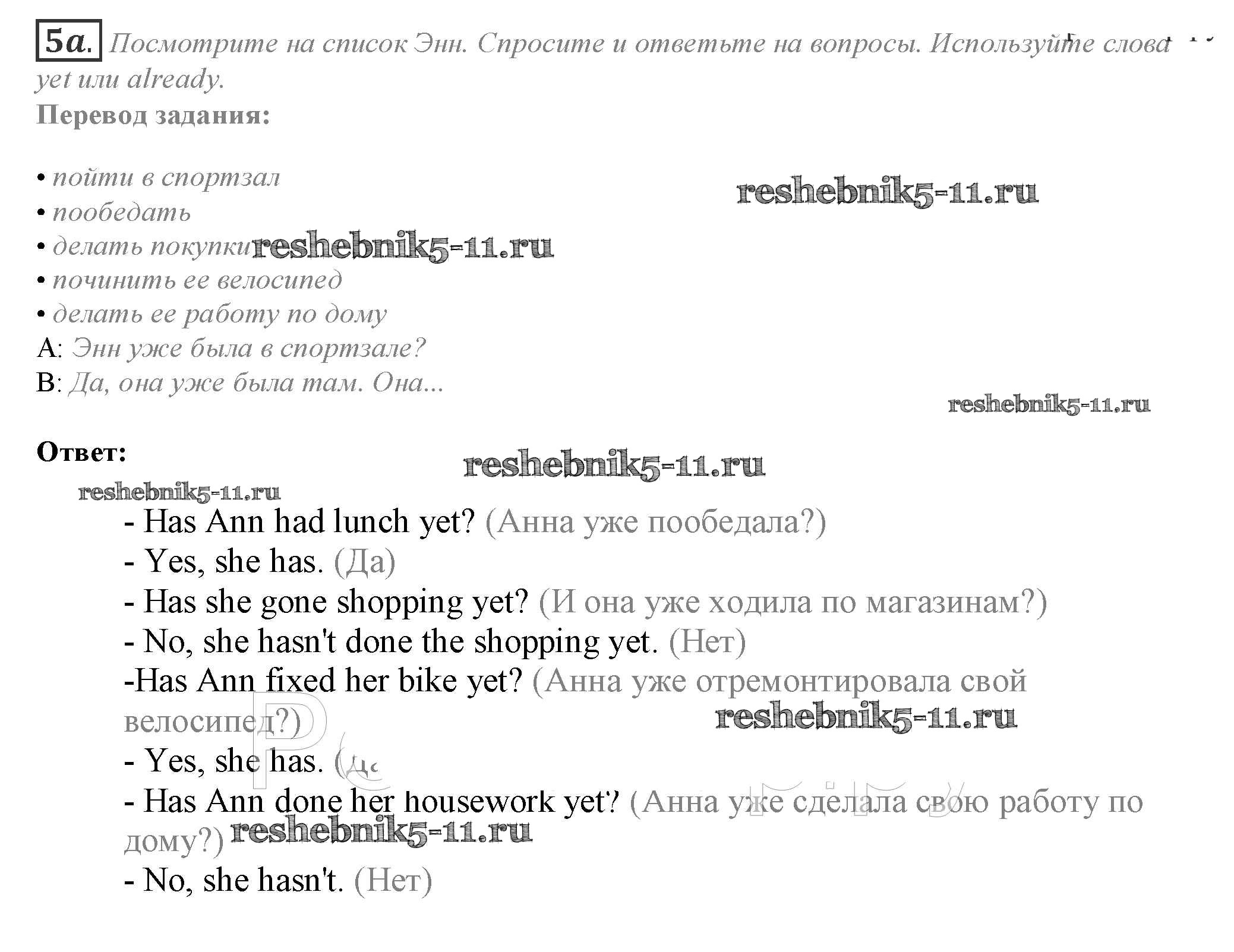 Готовая домашняя работа с ответами по Английскому языку за 10 класс Афанасьева, Дули, Михеева, Оби, Эванс Учебник Spotlight Просвещение 2015 ФГОС - Часть 1c 5a