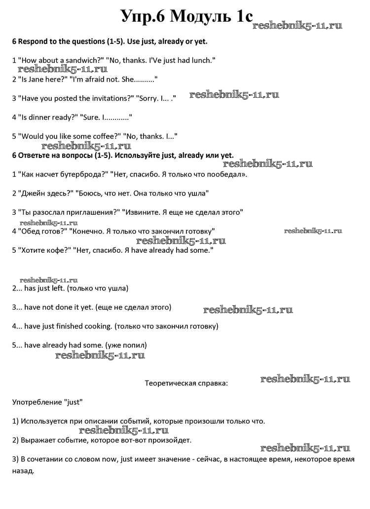 Готовая домашняя работа с ответами по Английскому языку за 10 класс Афанасьева, Дули, Михеева, Оби, Эванс Учебник Spotlight Просвещение 2015 ФГОС - Часть 1c 6