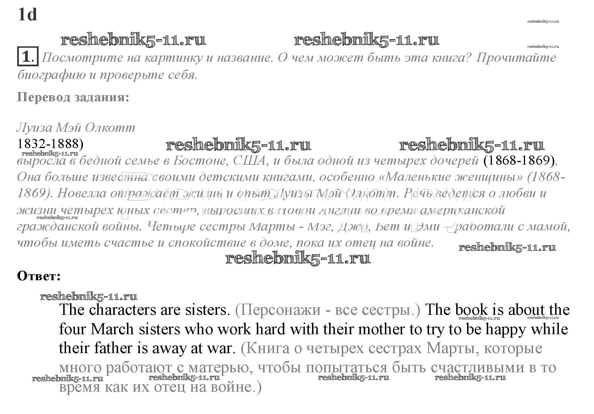 Готовая домашняя работа с ответами по Английскому языку за 10 класс Афанасьева, Дули, Михеева, Оби, Эванс Учебник Spotlight Просвещение 2015 ФГОС - Часть 1d 1