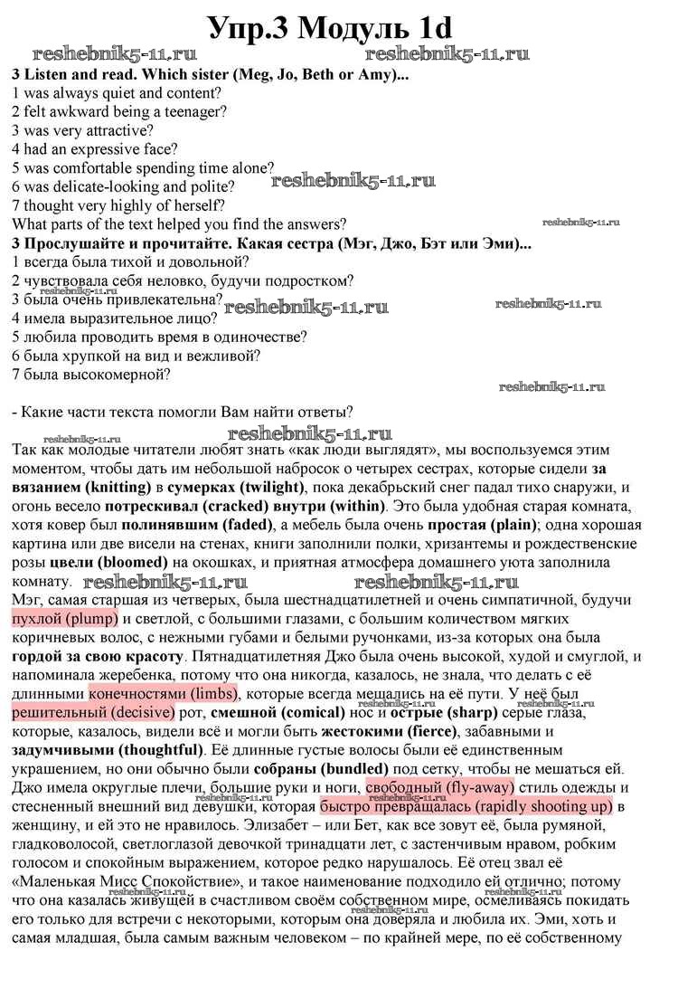Готовая домашняя работа с ответами по Английскому языку за 10 класс Афанасьева, Дули, Михеева, Оби, Эванс Учебник Spotlight Просвещение 2015 ФГОС - Часть 1d 3
