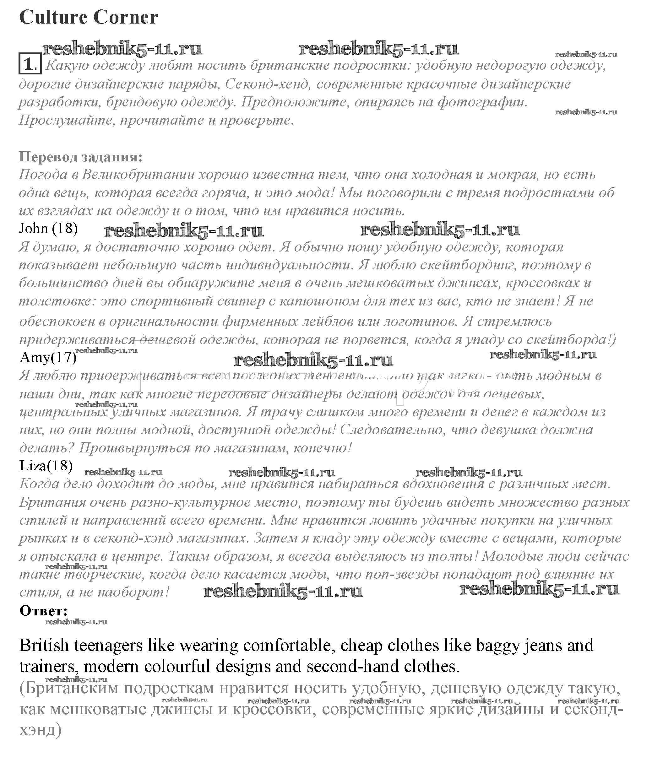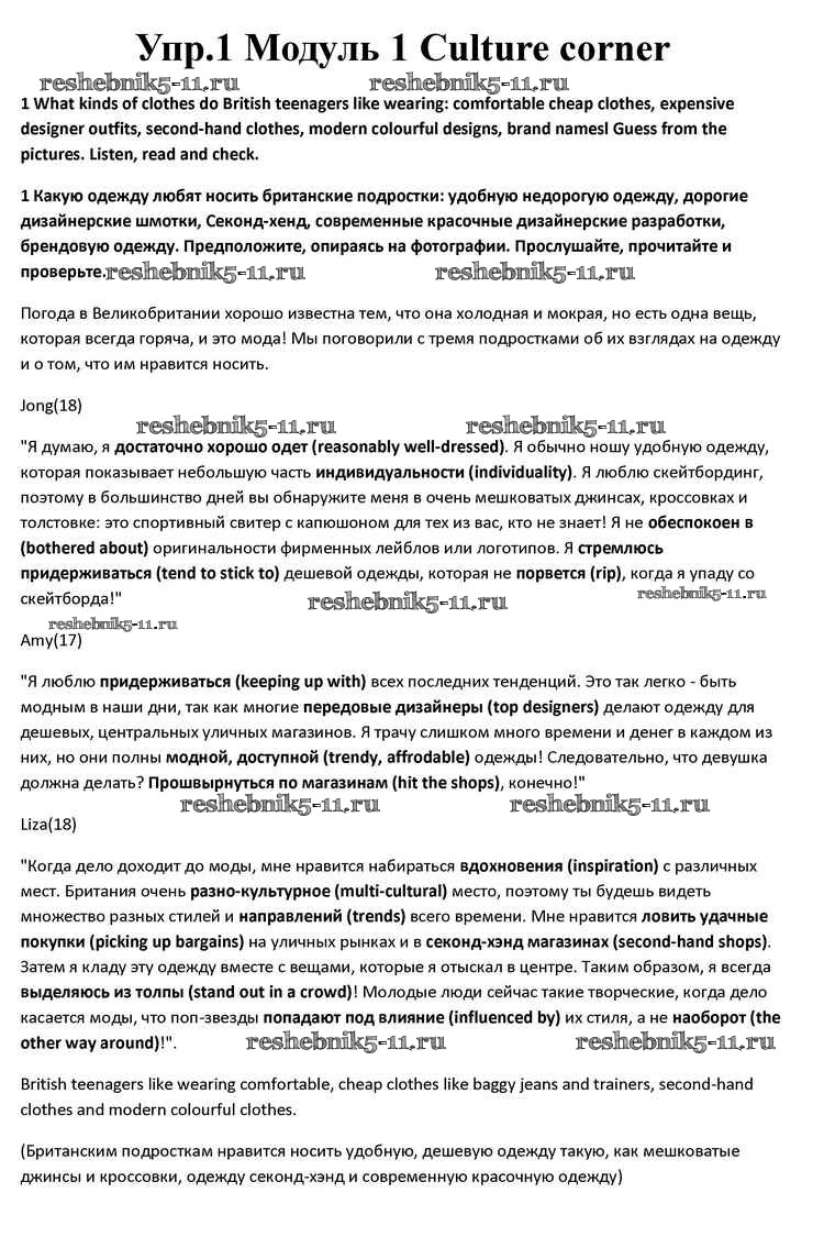 Готовая домашняя работа с ответами по Английскому языку за 10 класс Афанасьева, Дули, Михеева, Оби, Эванс Учебник Spotlight Просвещение 2015 ФГОС - Culture corner 1
