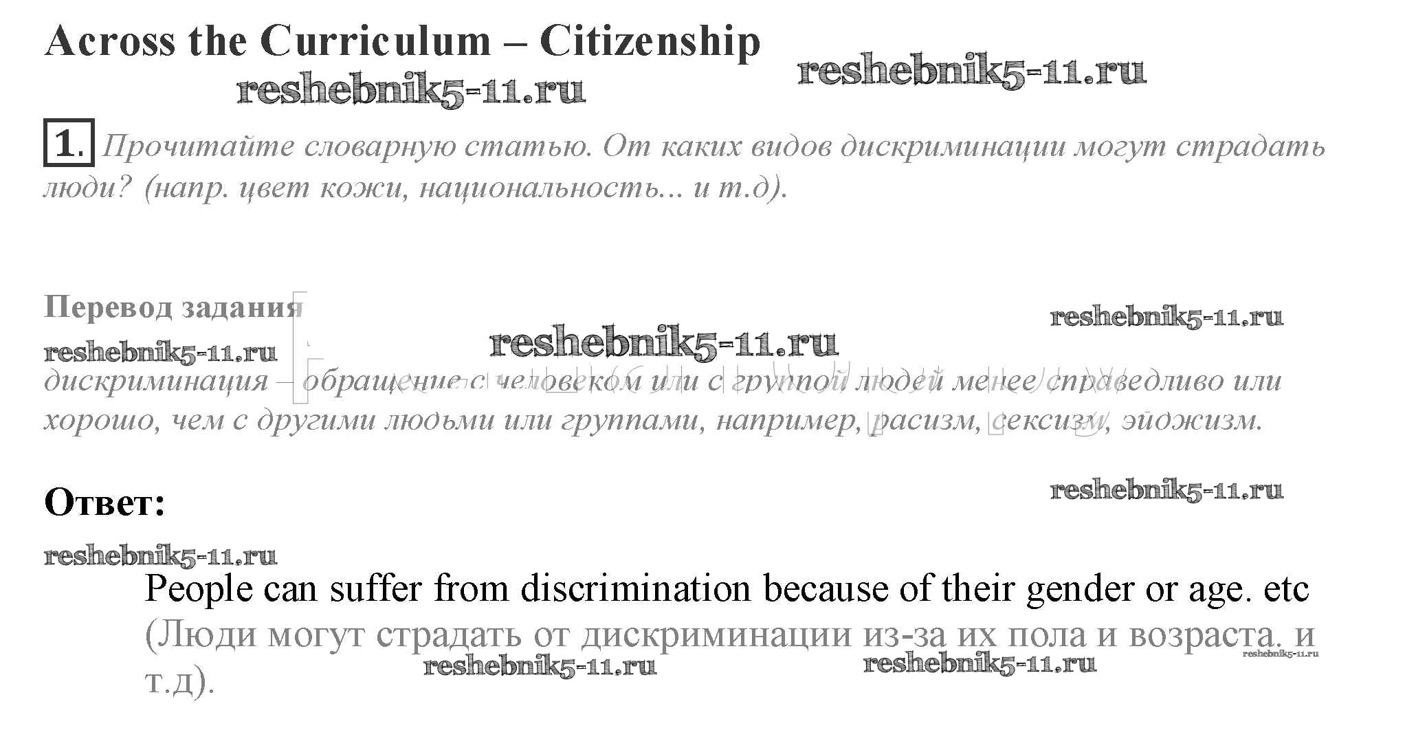 Готовая домашняя работа с ответами по Английскому языку за 10 класс Афанасьева, Дули, Михеева, Оби, Эванс Учебник Spotlight Просвещение 2015 ФГОС - Accross the curriculum Citizenship 1