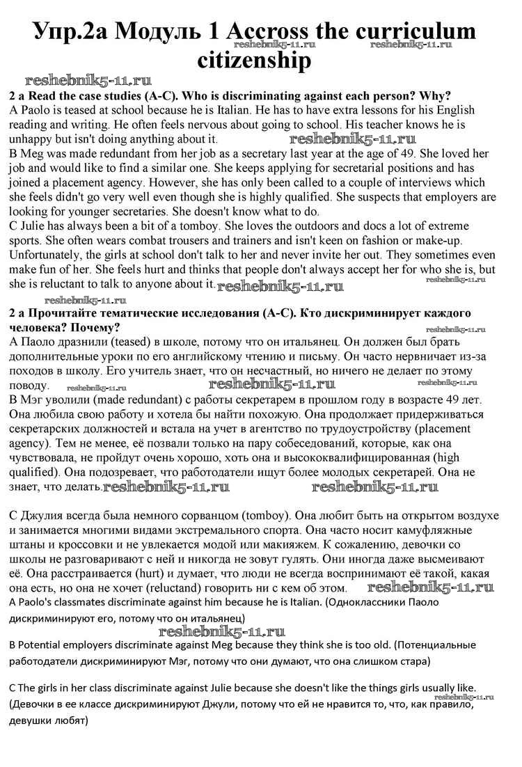 Готовая домашняя работа с ответами по Английскому языку за 10 класс Афанасьева, Дули, Михеева, Оби, Эванс Учебник Spotlight Просвещение 2015 ФГОС - Accross the curriculum Citizenship 2a