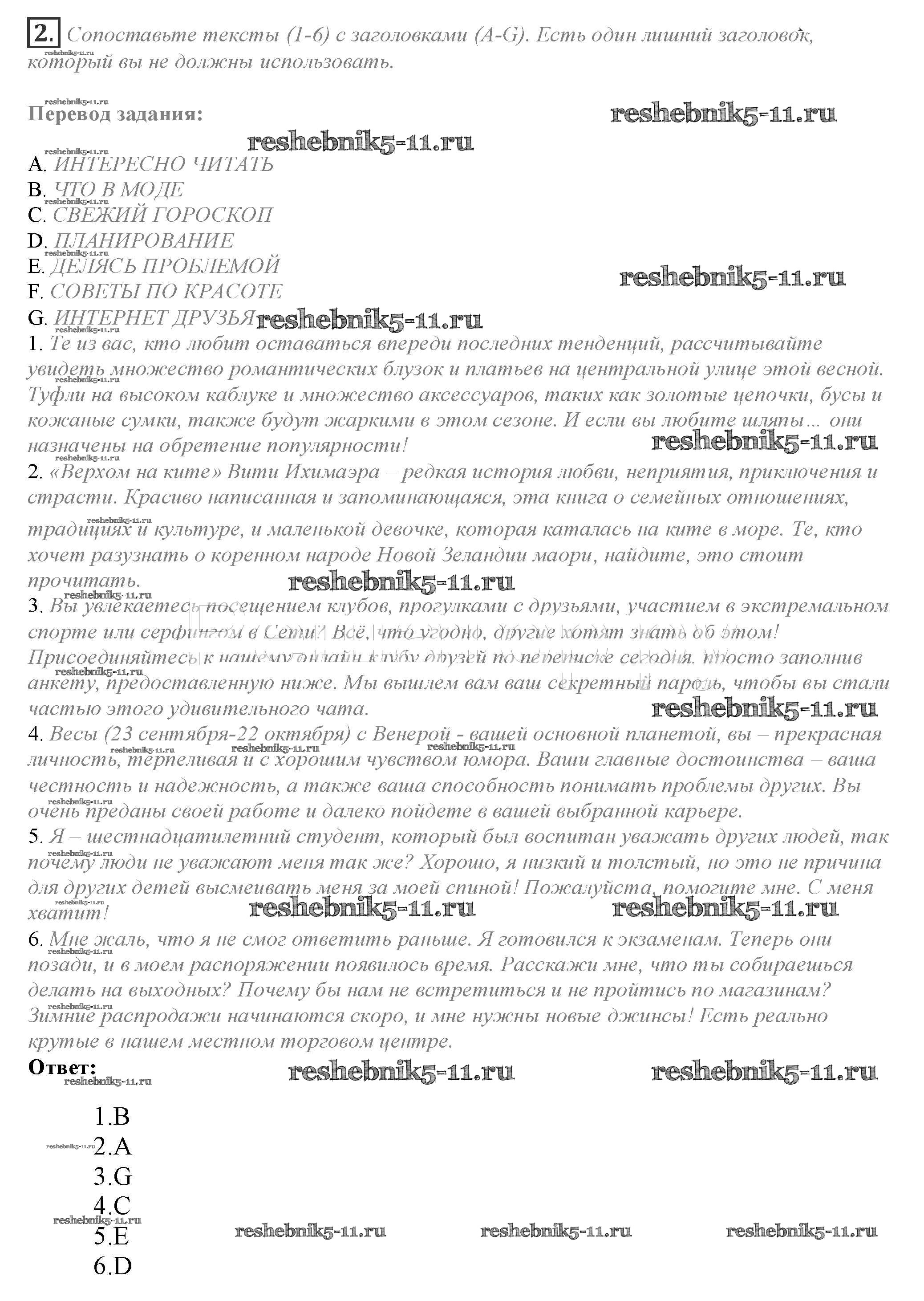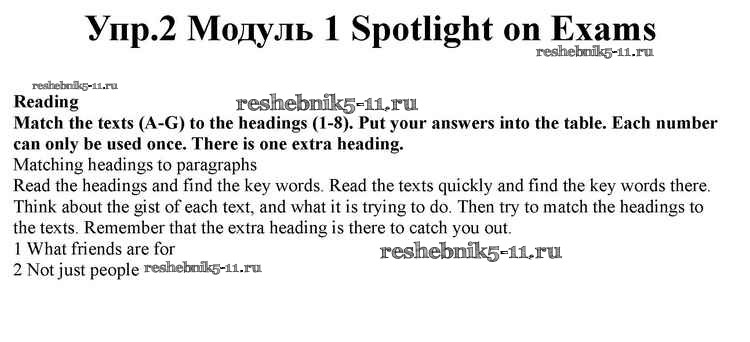 Готовая домашняя работа с ответами по Английскому языку за 10 класс Афанасьева, Дули, Михеева, Оби, Эванс Учебник Spotlight Просвещение 2015 ФГОС - Spotlight on Exams 2