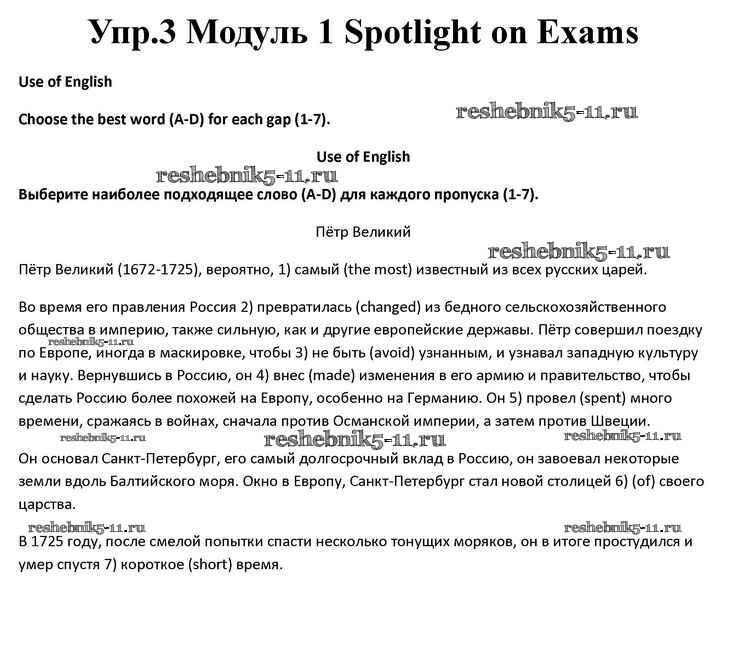 Готовая домашняя работа с ответами по Английскому языку за 10 класс Афанасьева, Дули, Михеева, Оби, Эванс Учебник Spotlight Просвещение 2015 ФГОС - Spotlight on Exams 3