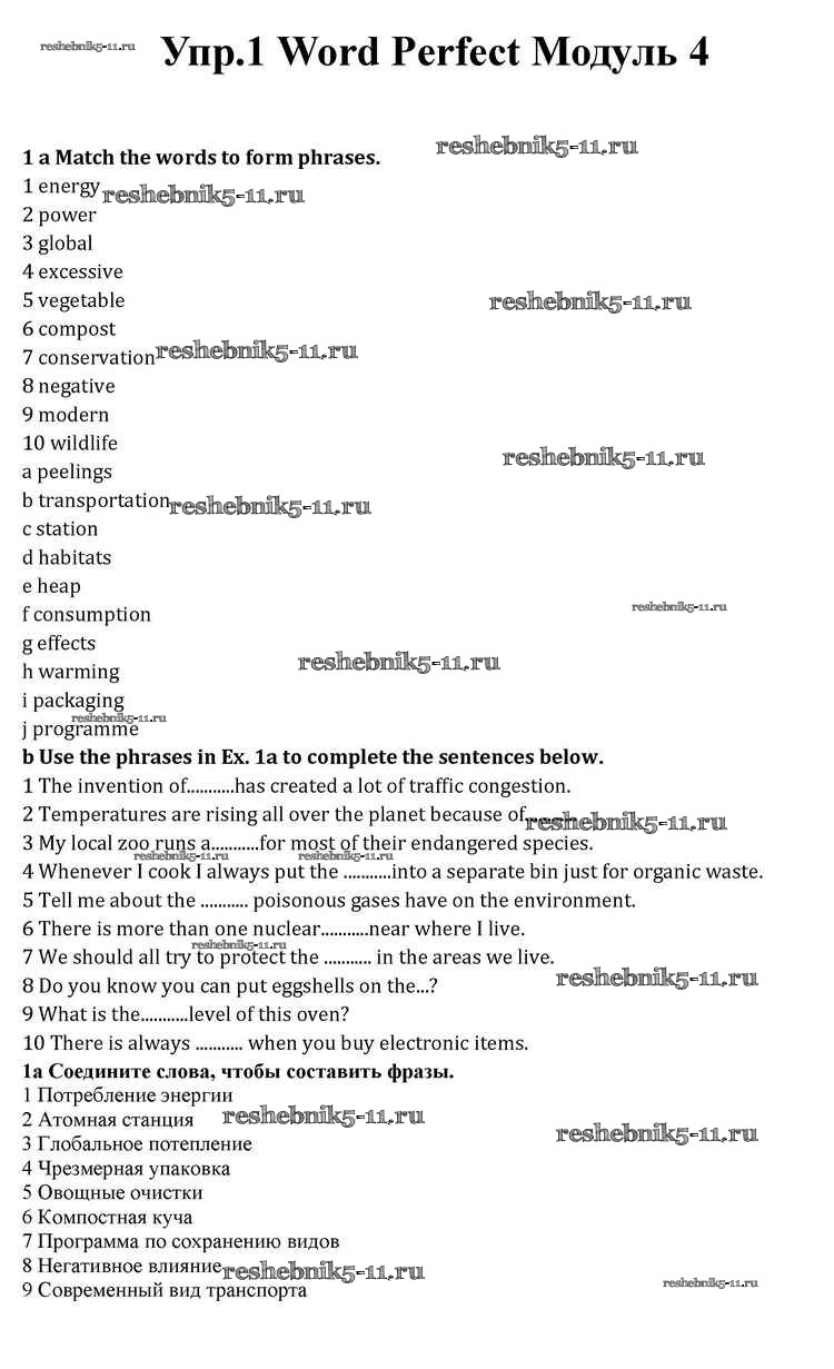 Готовая домашняя работа с ответами по Английскому языку за 10 класс Афанасьева, Дули, Михеева, Оби, Эванс Учебник Spotlight Просвещение 2015 ФГОС - Module 4 1