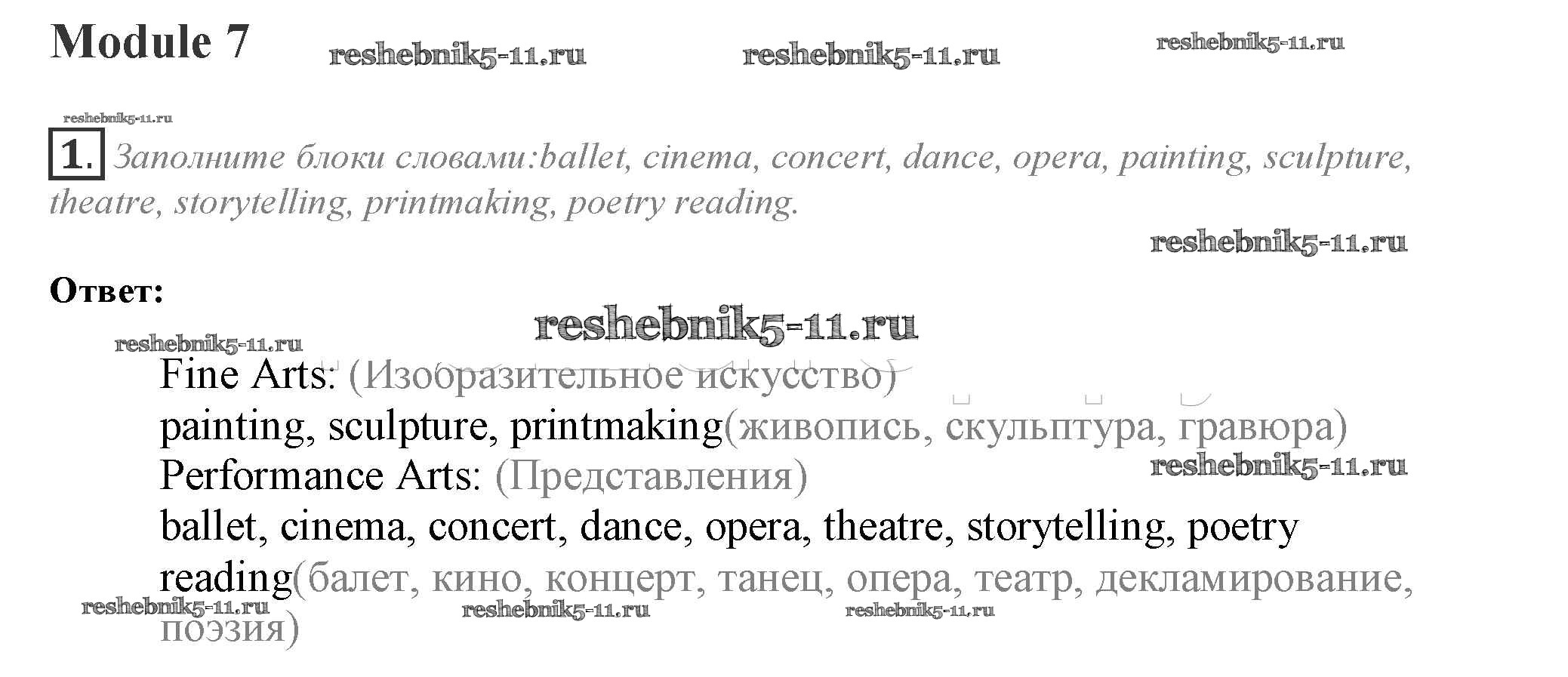 Готовая домашняя работа с ответами по Английскому языку за 10 класс Афанасьева, Дули, Михеева, Оби, Эванс Учебник Spotlight Просвещение 2015 ФГОС - Module 7 1