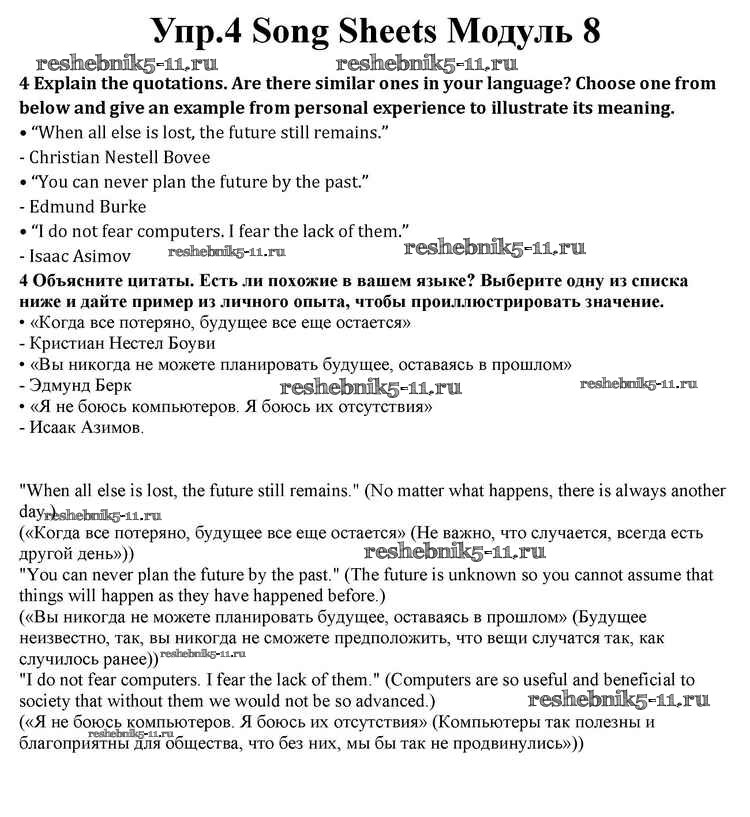 Готовая домашняя работа с ответами по Английскому языку за 10 класс Афанасьева, Дули, Михеева, Оби, Эванс Учебник Spotlight Просвещение 2015 ФГОС - Module 8 4