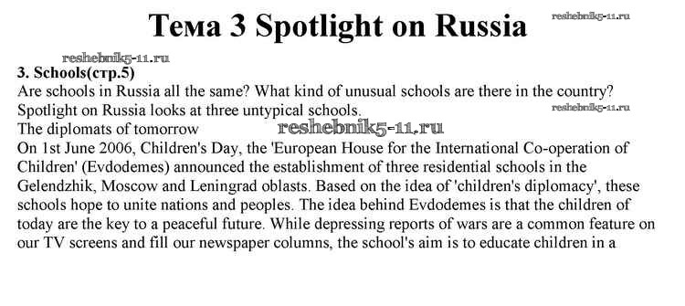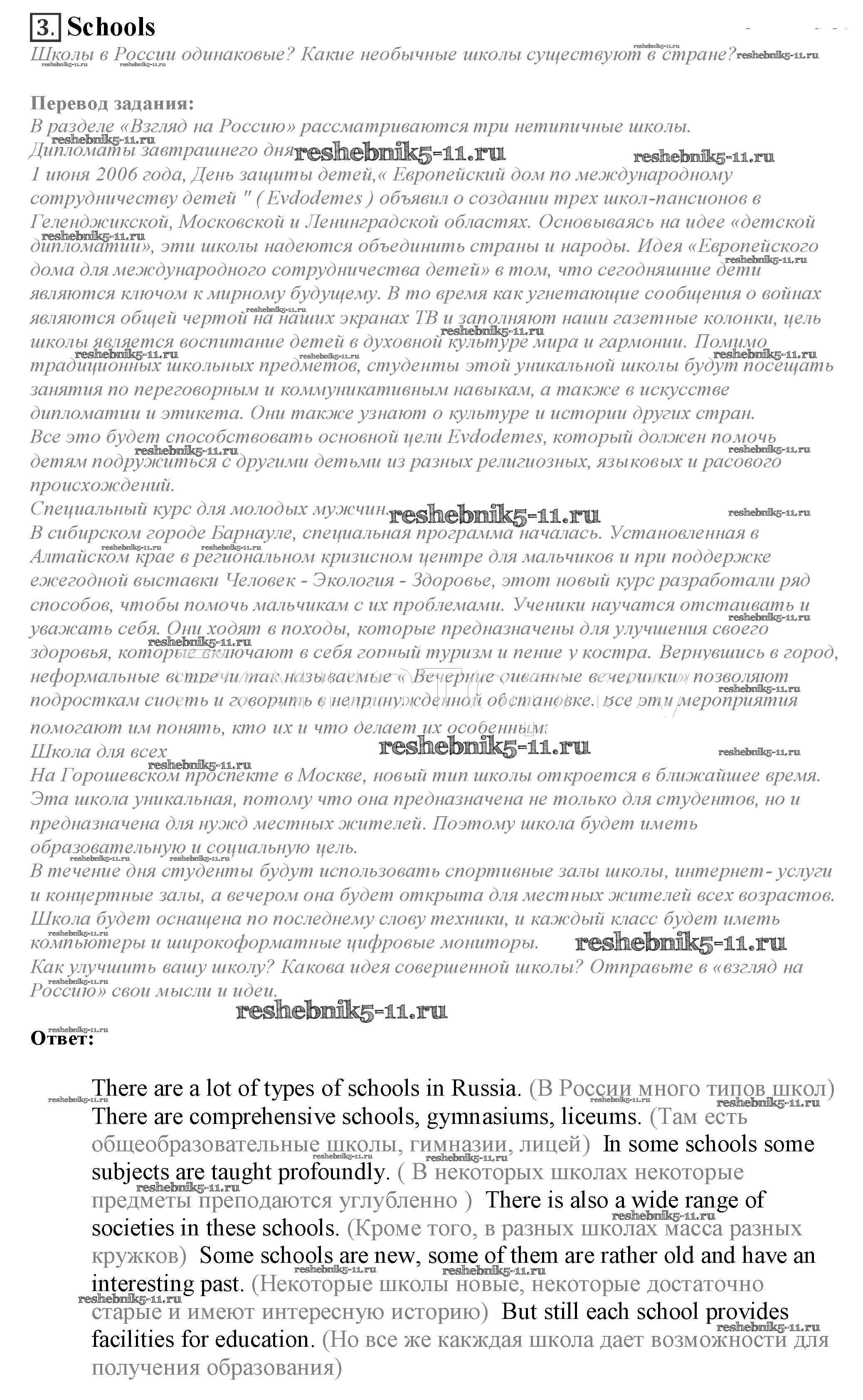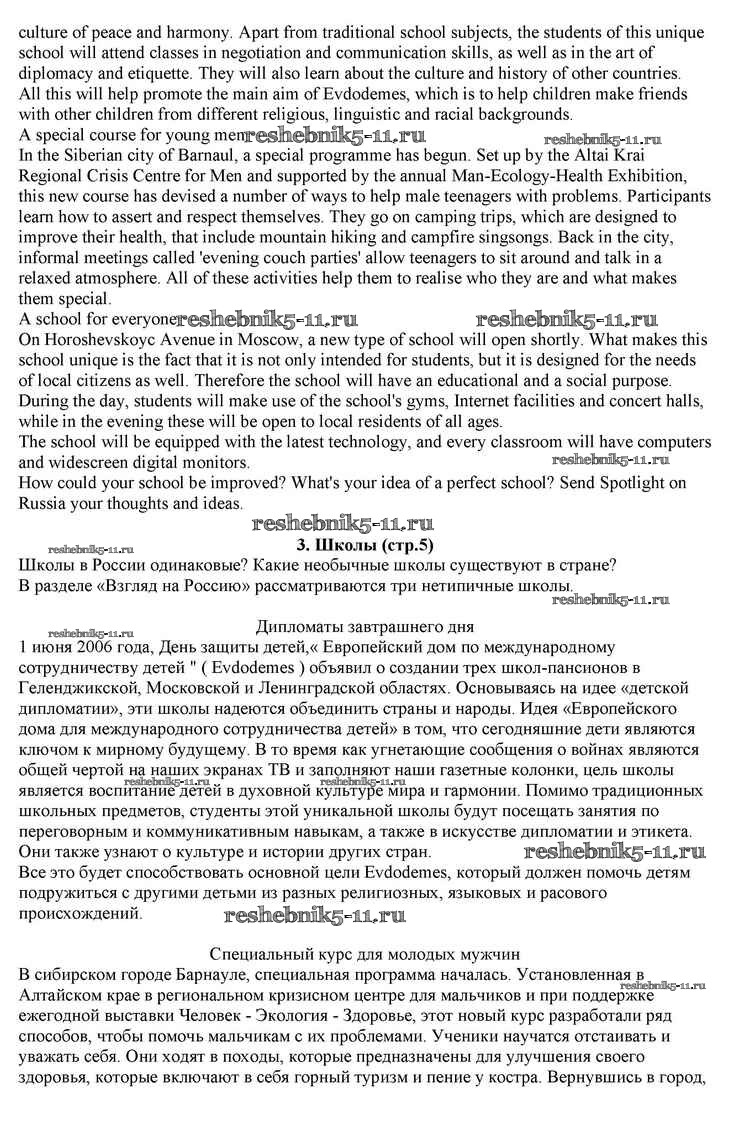 Готовая домашняя работа с ответами по Английскому языку за 10 класс Афанасьева, Дули, Михеева, Оби, Эванс Учебник Spotlight Просвещение 2015 ФГОС - Spotlight on Russia 3. Schools