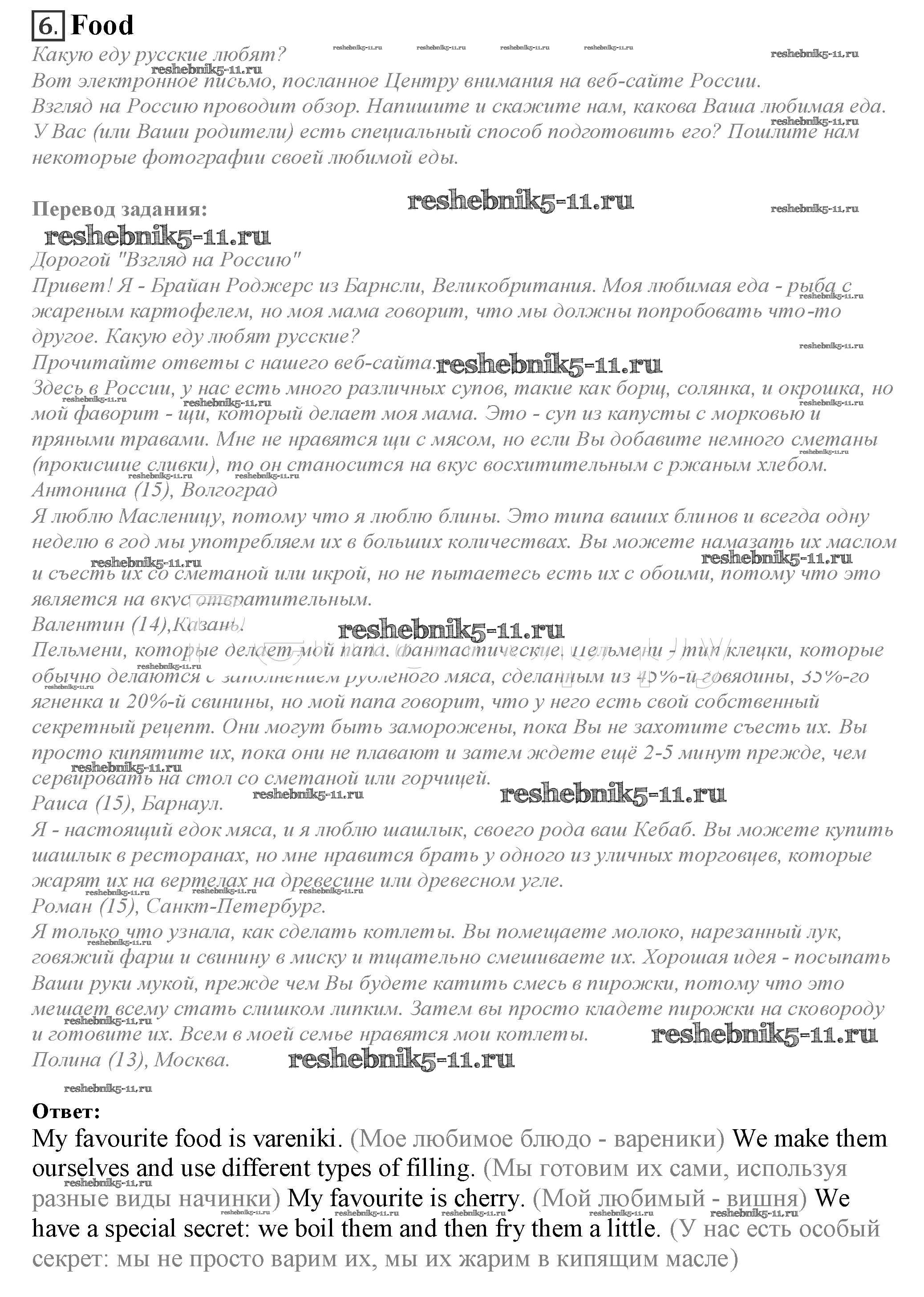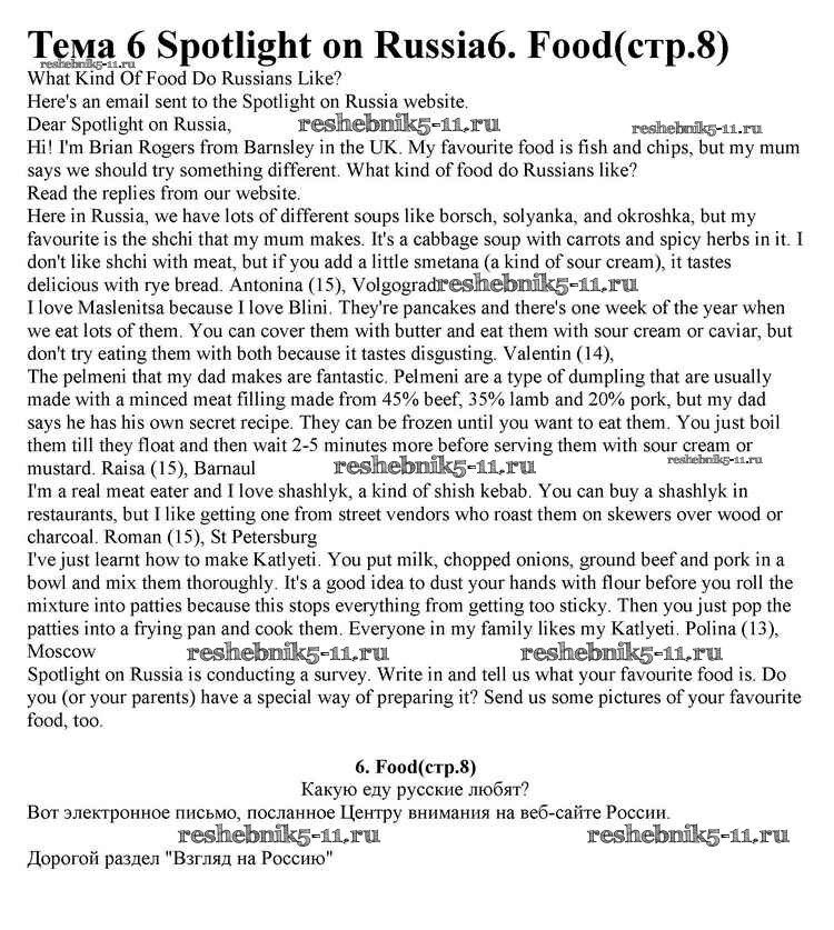 Решебник 2 / spotlight on russia / 6. food