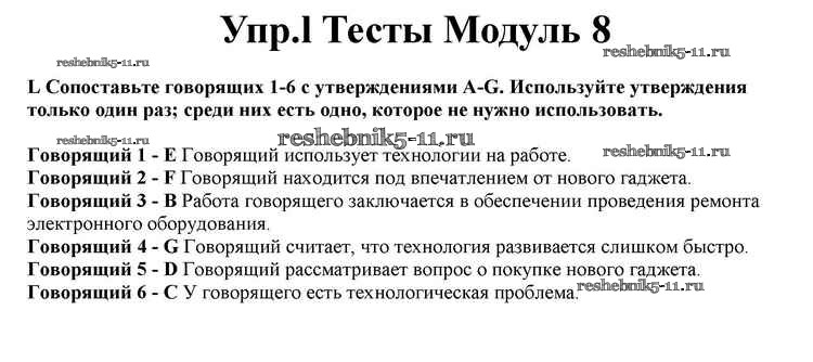 Готовая домашняя работа с ответами по Английскому языку за 10 класс Афанасьева, Дули, Михеева, Оби, Эванс Учебник Spotlight Просвещение 2015 ФГОС - Modul 8 l