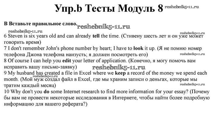 Готовая домашняя работа с ответами по Английскому языку за 10 класс Афанасьева, Дули, Михеева, Оби, Эванс Учебник Spotlight Просвещение 2015 ФГОС - Modul 8 b
