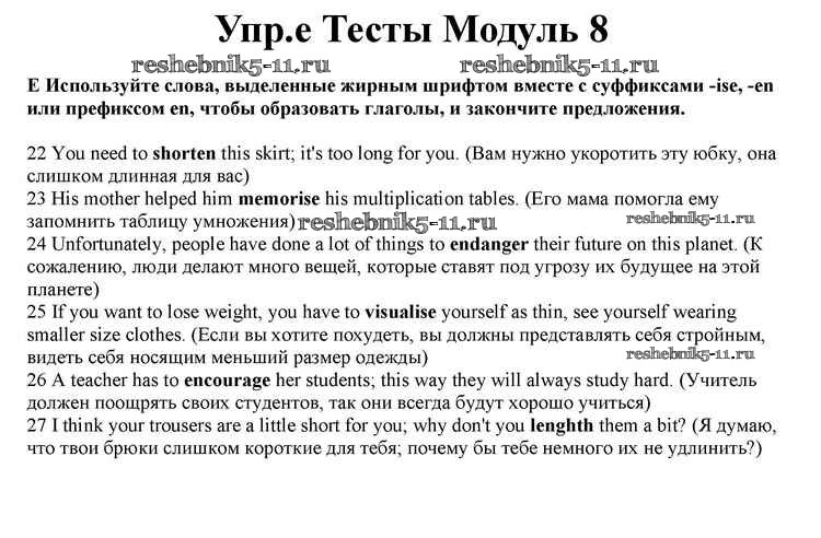 Готовая домашняя работа с ответами по Английскому языку за 10 класс Афанасьева, Дули, Михеева, Оби, Эванс Учебник Spotlight Просвещение 2015 ФГОС - Modul 8 e