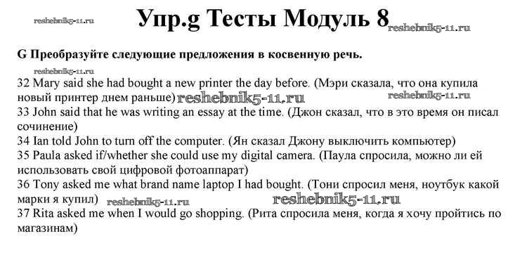 Готовая домашняя работа с ответами по Английскому языку за 10 класс Афанасьева, Дули, Михеева, Оби, Эванс Учебник Spotlight Просвещение 2015 ФГОС - Modul 8 g