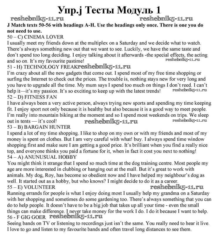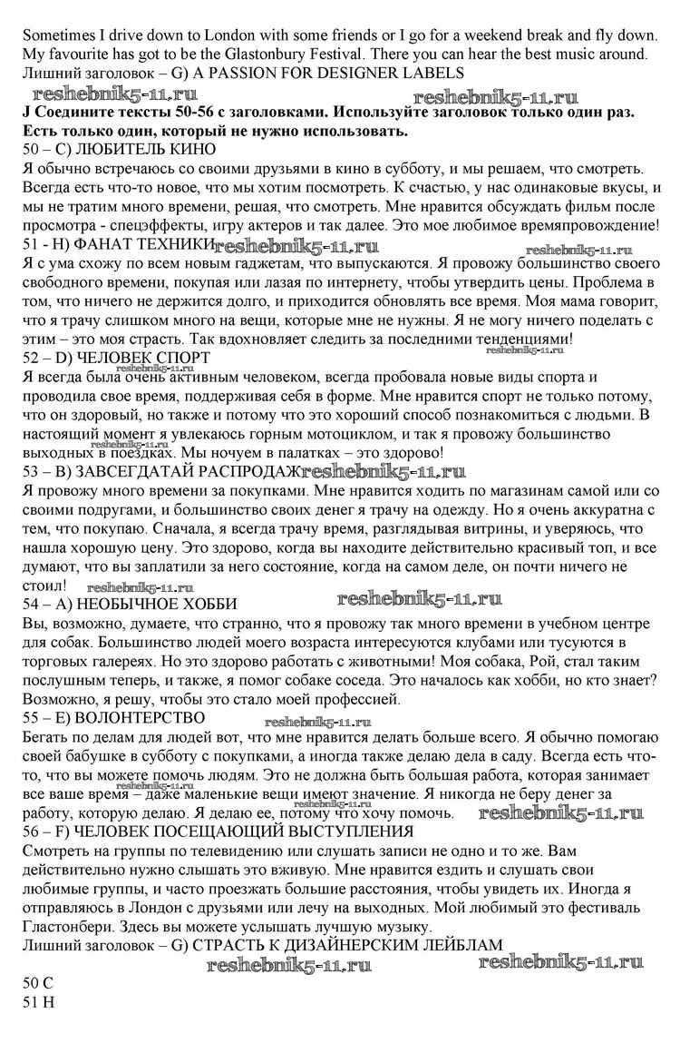 Готовая домашняя работа с ответами по Английскому языку за 10 класс Афанасьева, Дули, Михеева, Оби, Эванс Учебник Spotlight Просвещение 2015 ФГОС - Modul 1 j