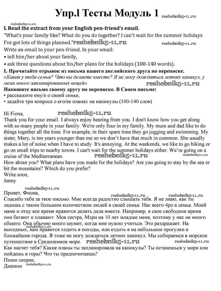 Готовая домашняя работа с ответами по Английскому языку за 10 класс Афанасьева, Дули, Михеева, Оби, Эванс Учебник Spotlight Просвещение 2015 ФГОС - Modul 1 l