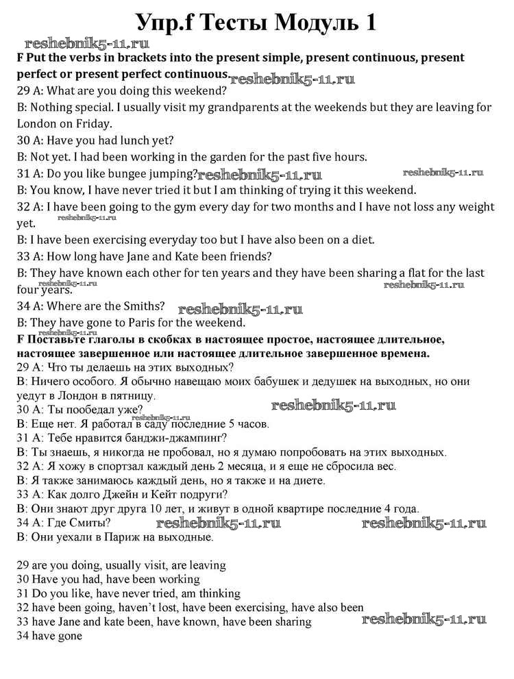 Готовая домашняя работа с ответами по Английскому языку за 10 класс Афанасьева, Дули, Михеева, Оби, Эванс Учебник Spotlight Просвещение 2015 ФГОС - Modul 1 f