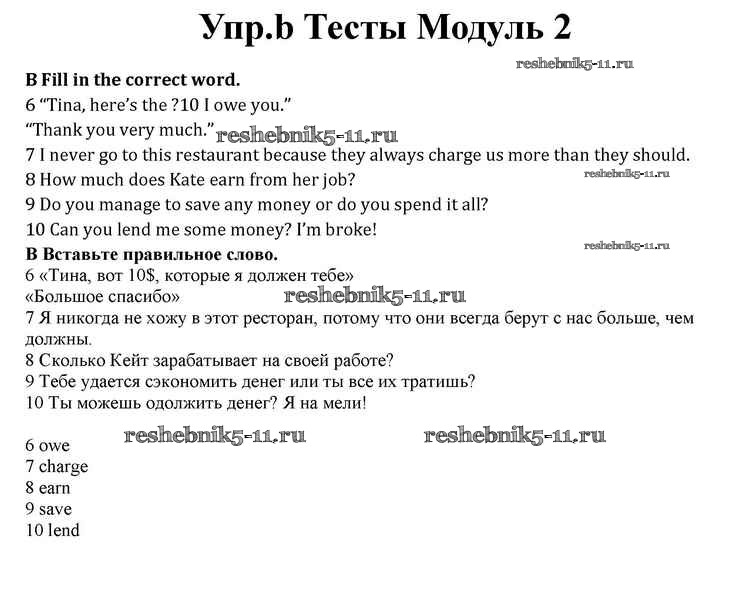 Готовая домашняя работа с ответами по Английскому языку за 10 класс Афанасьева, Дули, Михеева, Оби, Эванс Учебник Spotlight Просвещение 2015 ФГОС - Modul 2 b