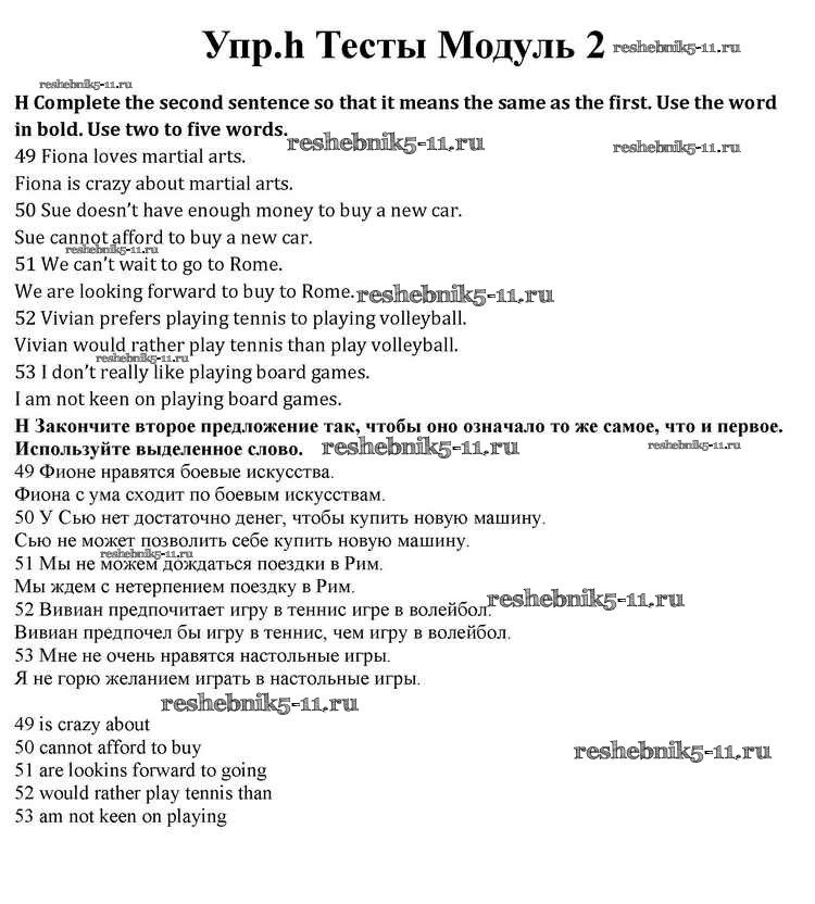 Готовая домашняя работа с ответами по Английскому языку за 10 класс Афанасьева, Дули, Михеева, Оби, Эванс Учебник Spotlight Просвещение 2015 ФГОС - Modul 2 h