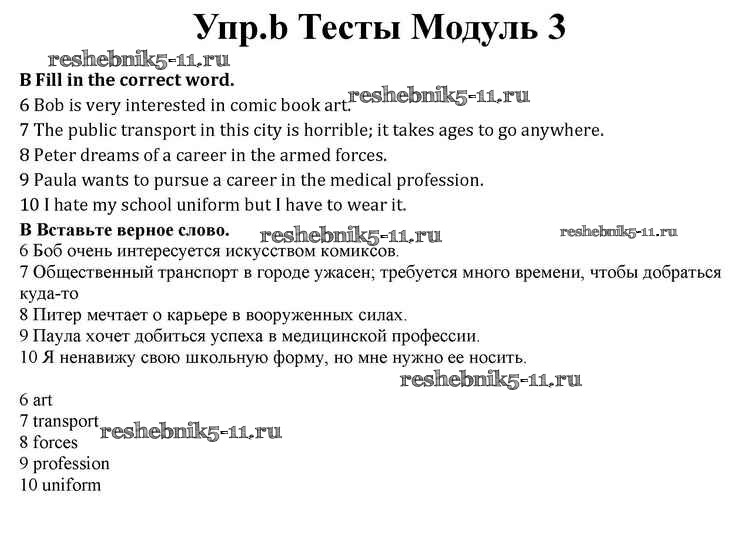Готовая домашняя работа с ответами по Английскому языку за 10 класс Афанасьева, Дули, Михеева, Оби, Эванс Учебник Spotlight Просвещение 2015 ФГОС - Modul 3 b