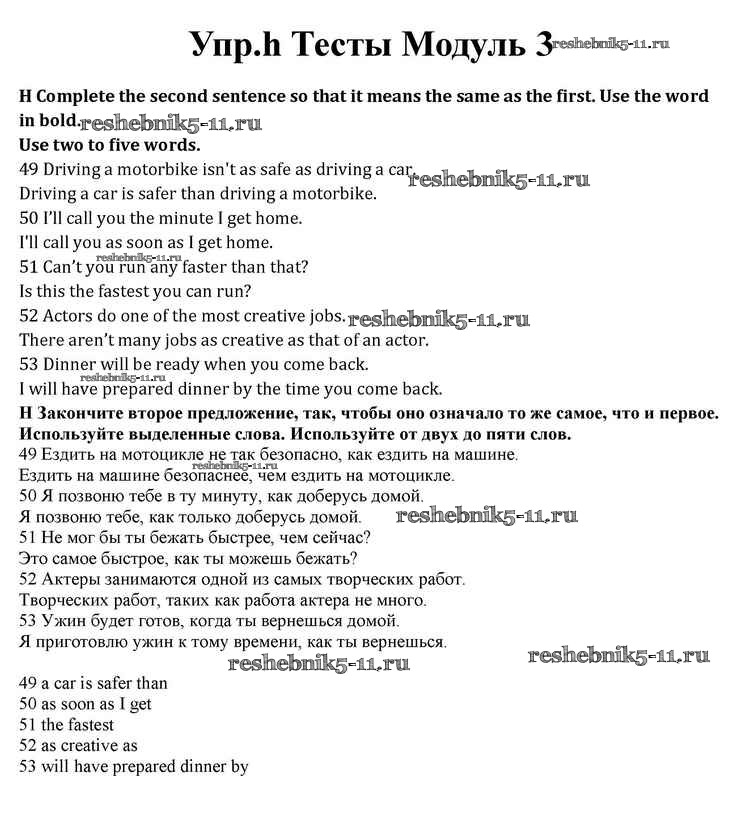 Готовая домашняя работа с ответами по Английскому языку за 10 класс Афанасьева, Дули, Михеева, Оби, Эванс Учебник Spotlight Просвещение 2015 ФГОС - Modul 3 h
