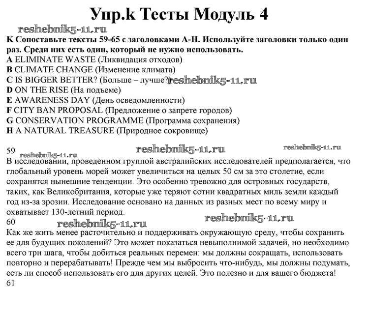Готовая домашняя работа с ответами по Английскому языку за 10 класс Афанасьева, Дули, Михеева, Оби, Эванс Учебник Spotlight Просвещение 2015 ФГОС - Modul 4 k