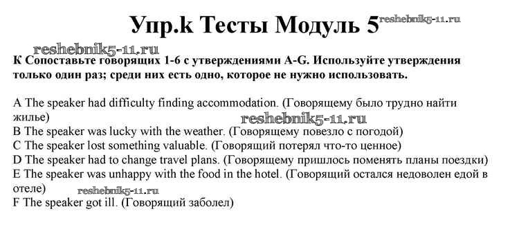 Готовая домашняя работа с ответами по Английскому языку за 10 класс Афанасьева, Дули, Михеева, Оби, Эванс Учебник Spotlight Просвещение 2015 ФГОС - Modul 5 k