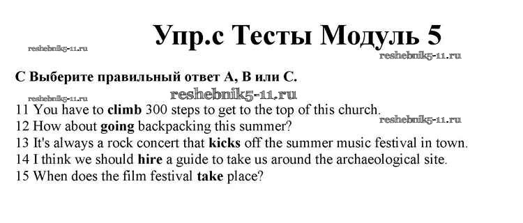 Готовая домашняя работа с ответами по Английскому языку за 10 класс Афанасьева, Дули, Михеева, Оби, Эванс Учебник Spotlight Просвещение 2015 ФГОС - Modul 5 c