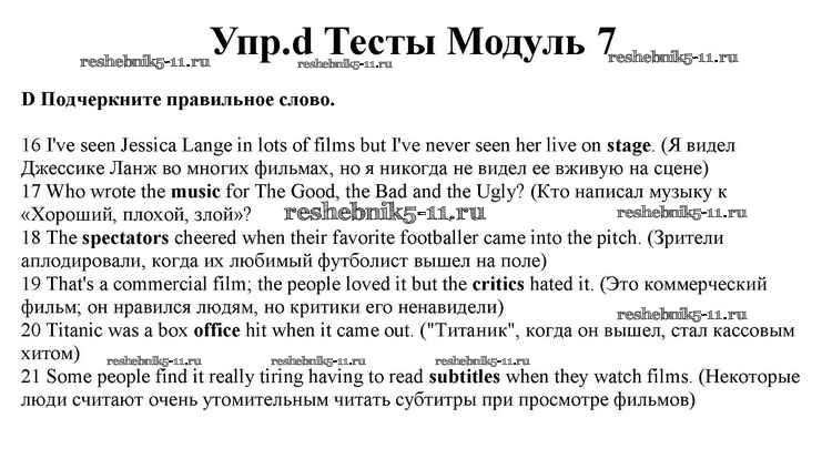 Готовая домашняя работа с ответами по Английскому языку за 10 класс Афанасьева, Дули, Михеева, Оби, Эванс Учебник Spotlight Просвещение 2015 ФГОС - Modul 7 d