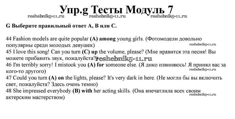 Готовая домашняя работа с ответами по Английскому языку за 10 класс Афанасьева, Дули, Михеева, Оби, Эванс Учебник Spotlight Просвещение 2015 ФГОС - Modul 7 g